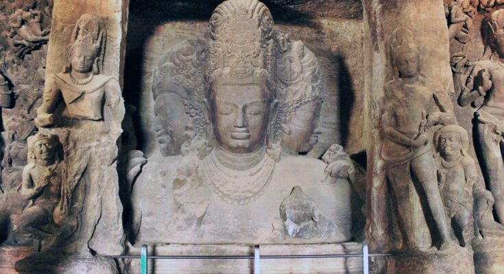 इसका भूमि का ऐतिहासिक नाम घारापुरी है. यहाँ हिन्दू धर्म के अनेक देवी देवताओं कि मूर्तियाँ विध्यमान हैं.ये मंदिर पहाड़ियों को काटकर बनाये गए हैं. यहाँ भगवान शंकर की नौ बड़ी-बड़ी मूर्तियाँ हैं जो शंकर जी के विभिन्न रूपों तथा क्रियाओं को दर्शाती हैं. इनमें शिव की ” त्रिमूर्ति ” प्रतिमा सबसे आकर्षक और बडी करीब 24 फीट लंबी तथा 17 फीट ऊंची है.