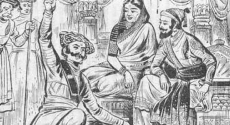 शिवाजी महाराज और महाराज के सेनापति सूबेदार सरदार श्री तानाजी राव मालूसरे के बिच सुसंवाद हो रहा था. तानाजी अपने पुत्र रायबा की शादी का निमंत्रण देने आये थे.