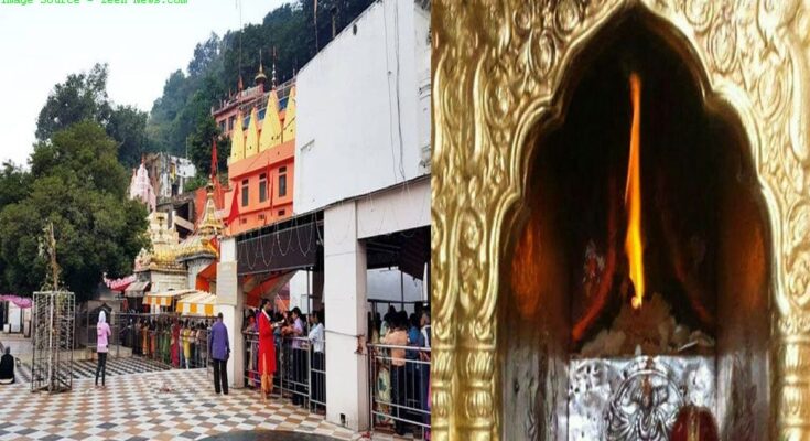 यहा विध्यमान मंदिर माता के अन्य मंदिरों की तुलना में अनोखा है. क्योंकि यहां पर किसी मूर्ति की पूजा नहीं होती है बल्कि पृथ्वी के गर्भ से निकल रही नौ ज्वालाओं की पूजा होती है. जो की 51 शक्तिपीठ में से एक है. इस मंदिर में नवरात्र में भक्तों की भारी भीड़ दिखाई देती है. बादशाह अकबर ने इस ज्वाला को बुझााने की कोशिश की थी लेकिन वो नाकाम रहे थे. आज तक वैज्ञानिक भी इस ज्वाला के लगातार जलने का कारण नहीं जान पाए हैं.