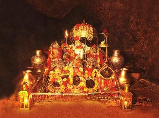 त्रिकुटा की पहाड़ियों पर स्थित एक गुफा में माता श्री वैष्णो देवी की स्वयंभू तीन मूर्तियां प्रकट हुई हैं. (1) देवी काली (दाएं), (2) सरस्वती (बाएं) और (3) लक्ष्मी (मध्य), पिण्डी के रूप में गुफा में बिराजमान हैं. इन तीनों पिंडियो के रूप को ” श्री वैष्णो देवी माता ”  कहा जाता है.