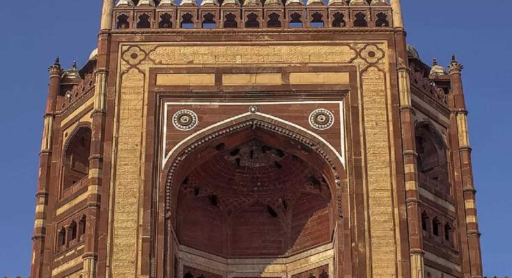 इस दरवाजे के प्रवेश द्वार के पूर्वी तोरण पर आज भी फारसी भाषा में शिलालेख अंकित हैं, जो सन 1601 में दक्कन पर बादशाह अकबर की विजय अभिलेख से संबंधित हैं. इसके 42 सीढ़ियों के ऊपर स्थित बुलंद दरवाज़ा 53.63 मीटर ऊंचा और 35 मीटर चौड़ा है. यह बुलंद दरवाजा लाल और बफ बलुआ पत्थर से बना है, जिसे सफेद संगमरमर से सजाया गया है.